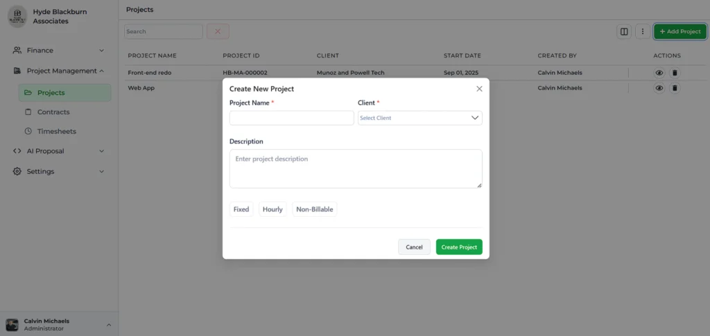 - Choose your Billing Type (Hourly, Fixed, or Non-Billable).